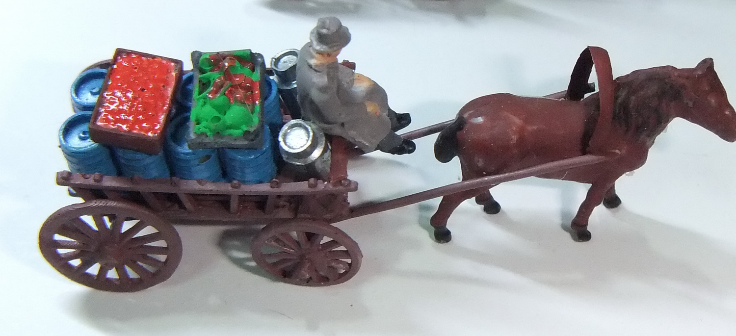 1/87 Крестьянская телега (повозка) с грузом, собранная окрашенная модель № 157